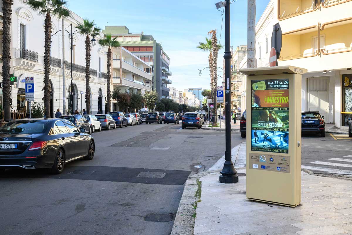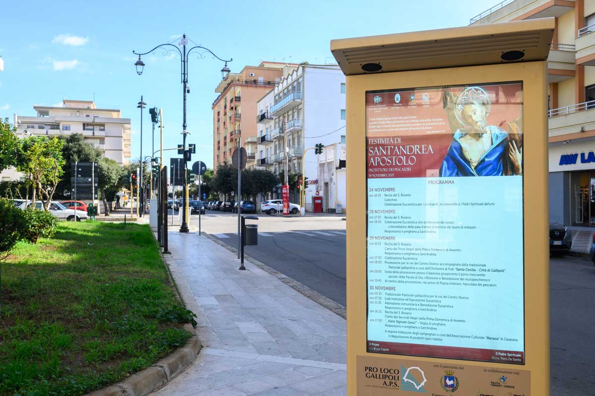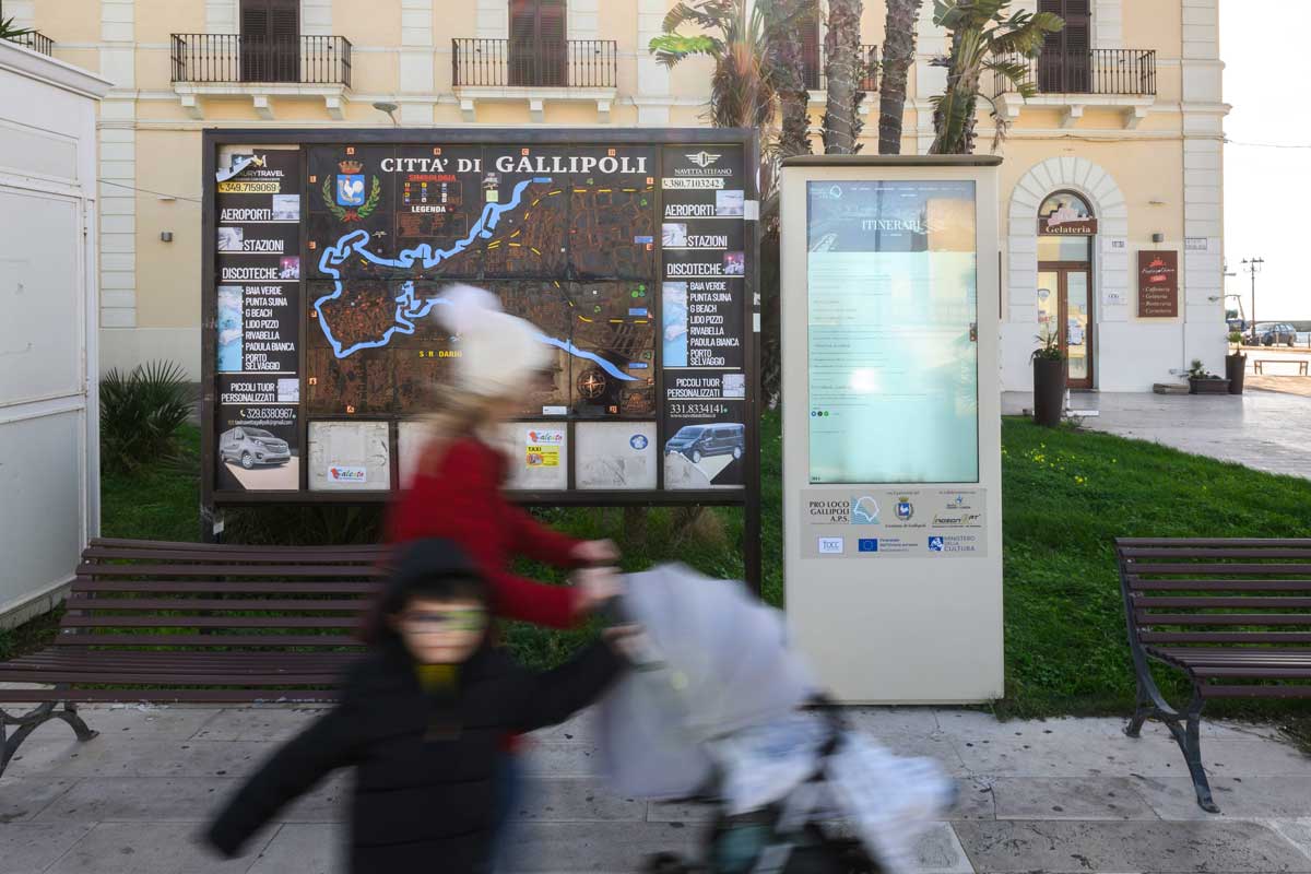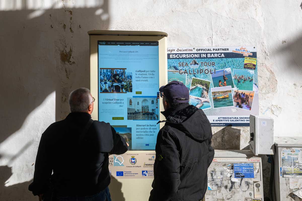 La proloco di Gallipoli si è affidata a Visionbox.it per rinnovare la comunicazione al servizio dei cittadini e dei turisti in visita alla città pugliese. Ha installato 4 totem multimediali interattivi da esterno della linea Moai NoLimit nella versione bifacciale e 3 totem touch monofacciali, sempre della stessa linea. Qui vengono visualizzate informazioni turistiche, eventi e comunicazioni di servizio.