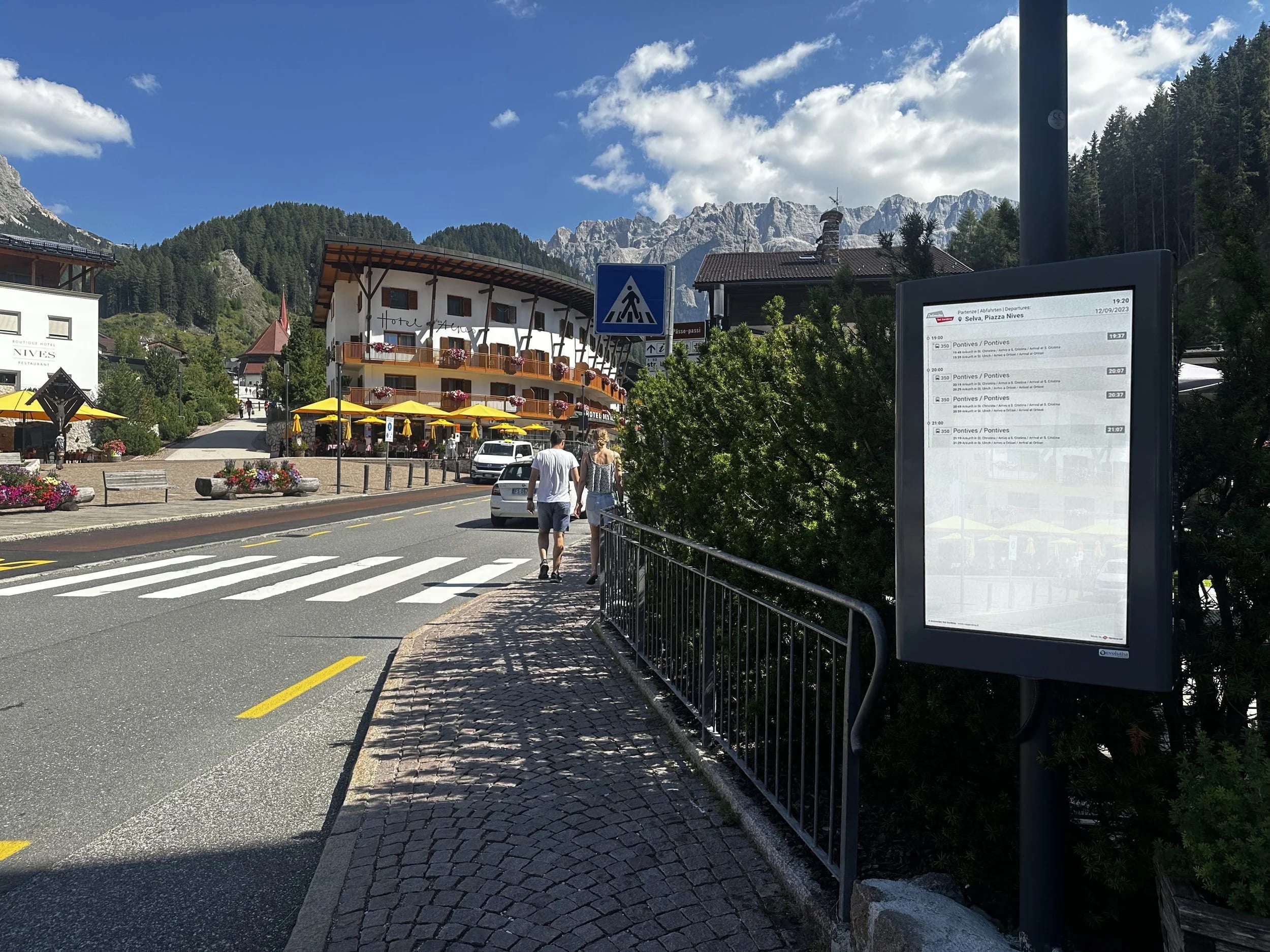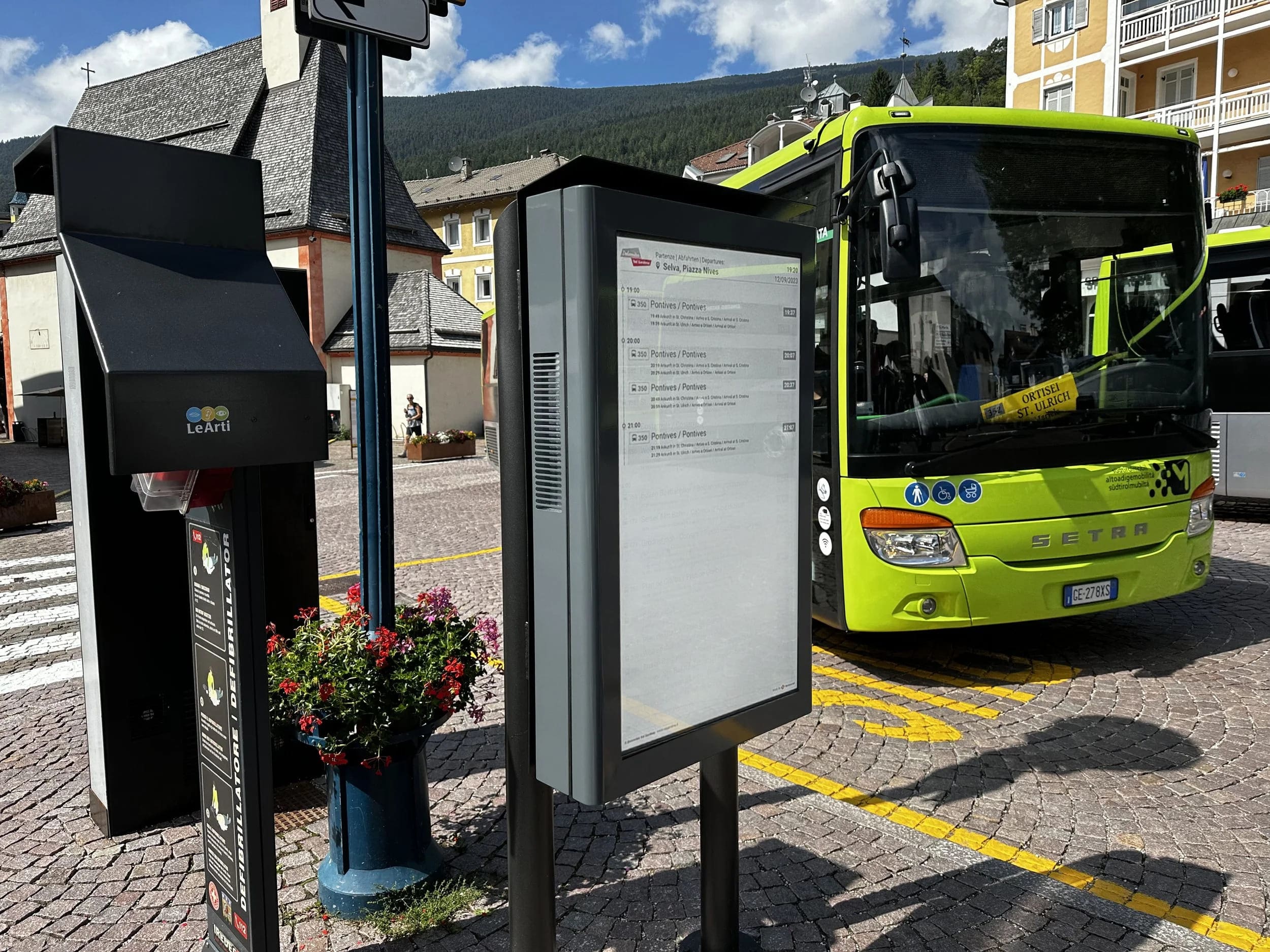 Bacheche outdoor per la gestione dei trasporti pubblici in Val Gardena